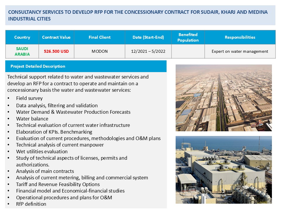 List of main projects developed by Eng. Alfredo Carbonell, founder of ACWATER Consultants:
